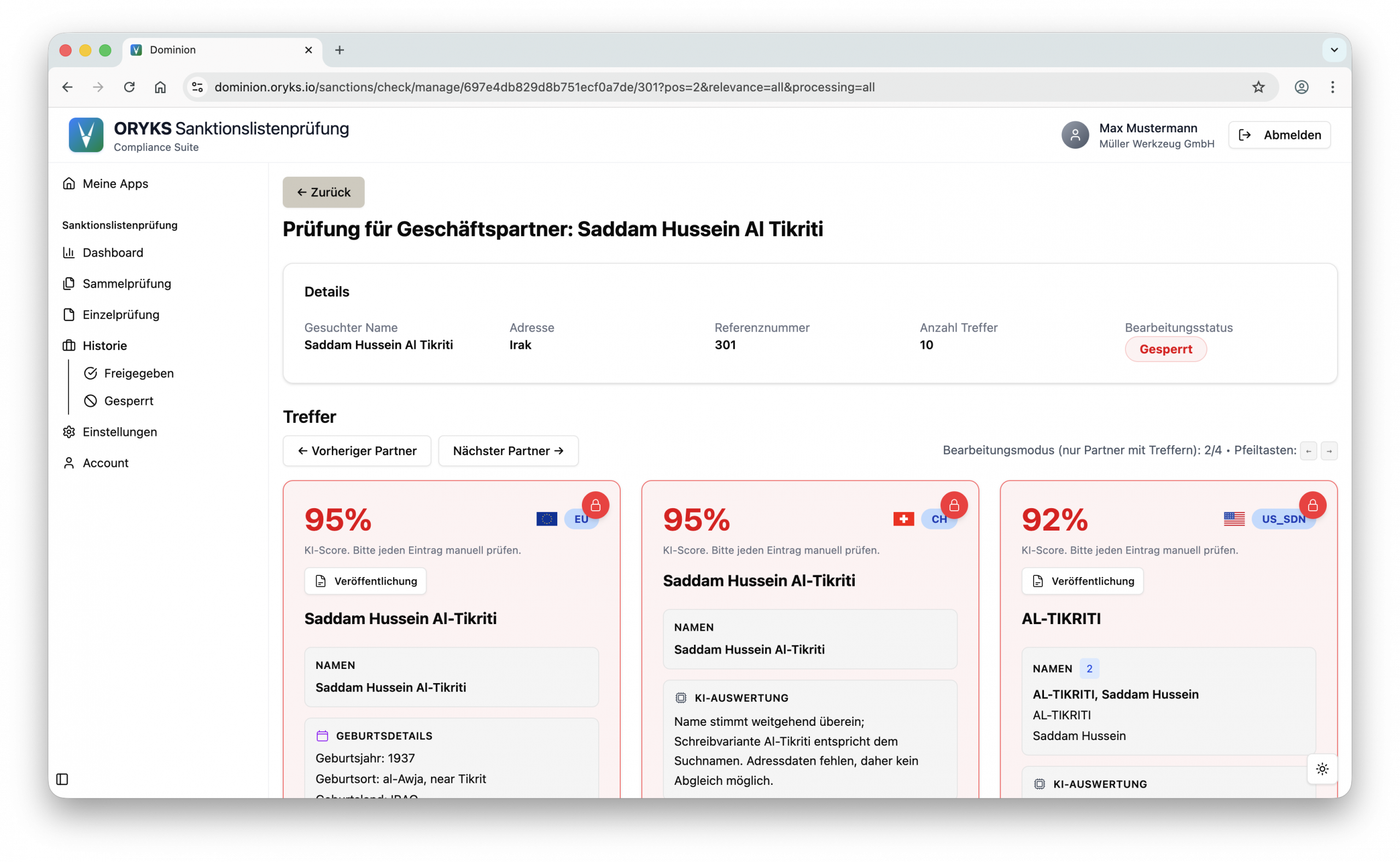 Wir unterstützt Sie mit intelligenter Relevanzbewertung für potenzielle Treffer. Damit prüfen Sie schneller und können datengetrieben entscheiden.