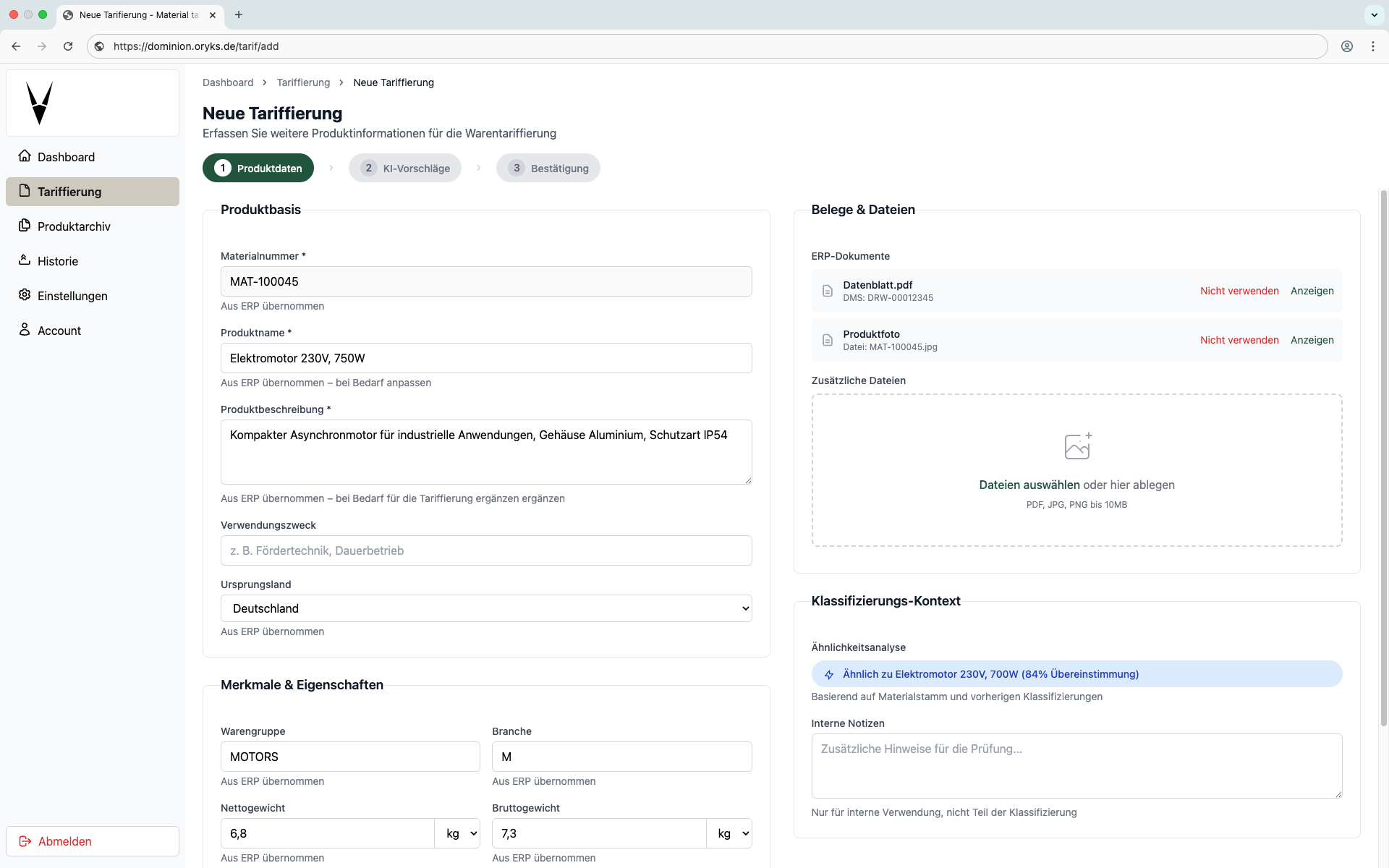 Unsere Lösung unterstützt Sie dabei, Produkte automatisch in die richtige Zolltarifnummer einzuordnen. Sie sparen Zeit, vermeiden Fehler und erhalten nachvollziehbare Vorschläge mit Begründung.